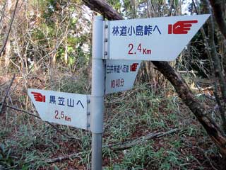 黒笠山まで まだまだ遠い 白井林道近道への下降点 の標識