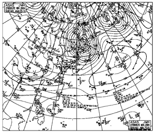 平成16年11月27日9時 地上天気図 平成16年11月27日9時 高層天気図 700hPa 850hPa