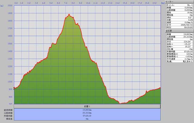 【GPS3 plus で計測】 累計沿面歩行距離 20.244km 累積標高差 +1616m