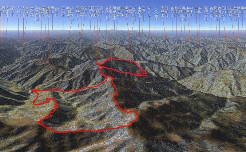 - 8の字型に 周回するコースです。重複区間は 天狗峠 お亀岩間 だけで きれいに 二つの輪を 繋げることができました。