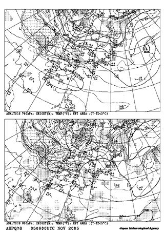2005年11月5日 9:00地上天気図 2005年11月5日9:00高層天気図 700hpa 850hpa