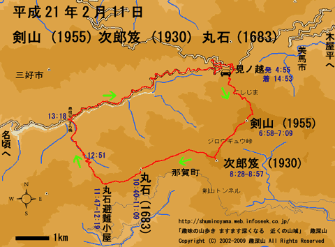 HOME > 山行記録 > 積雪期>剣山 (1955)次郎笈 (1930) 丸石(1683) > 平成21年2月11日