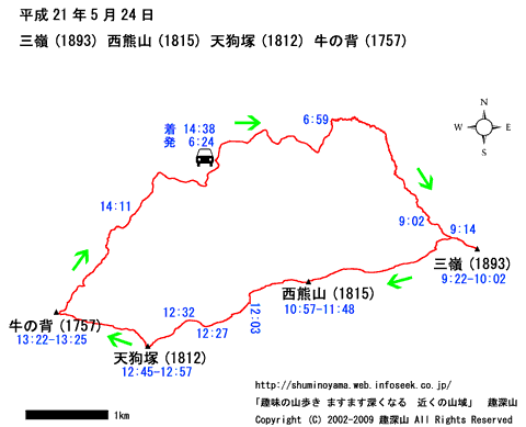 HOME > 山行記録 >三嶺(1893) 西熊山(1815) 天狗塚(1812) 牛ノ背(1757) > 平成21年5月24日