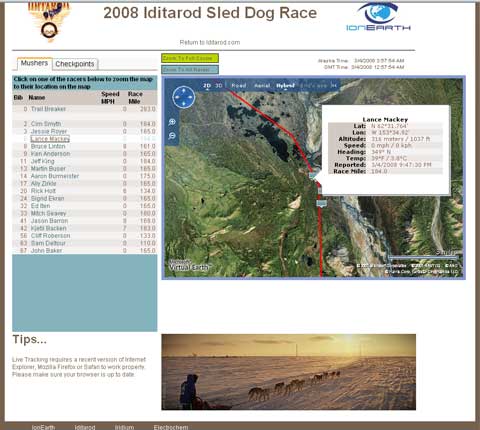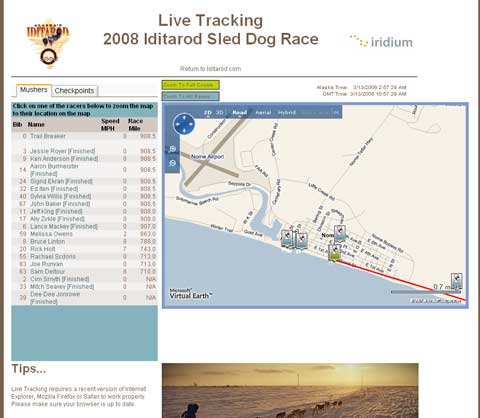 HOME > G P S >Live Tracking 2008 Iditarod Sled Dog Race