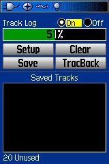 トラックログ画面で Setup を選ぶ。