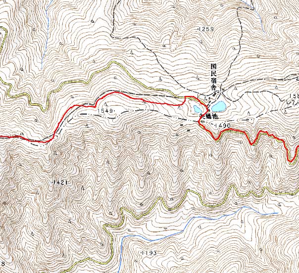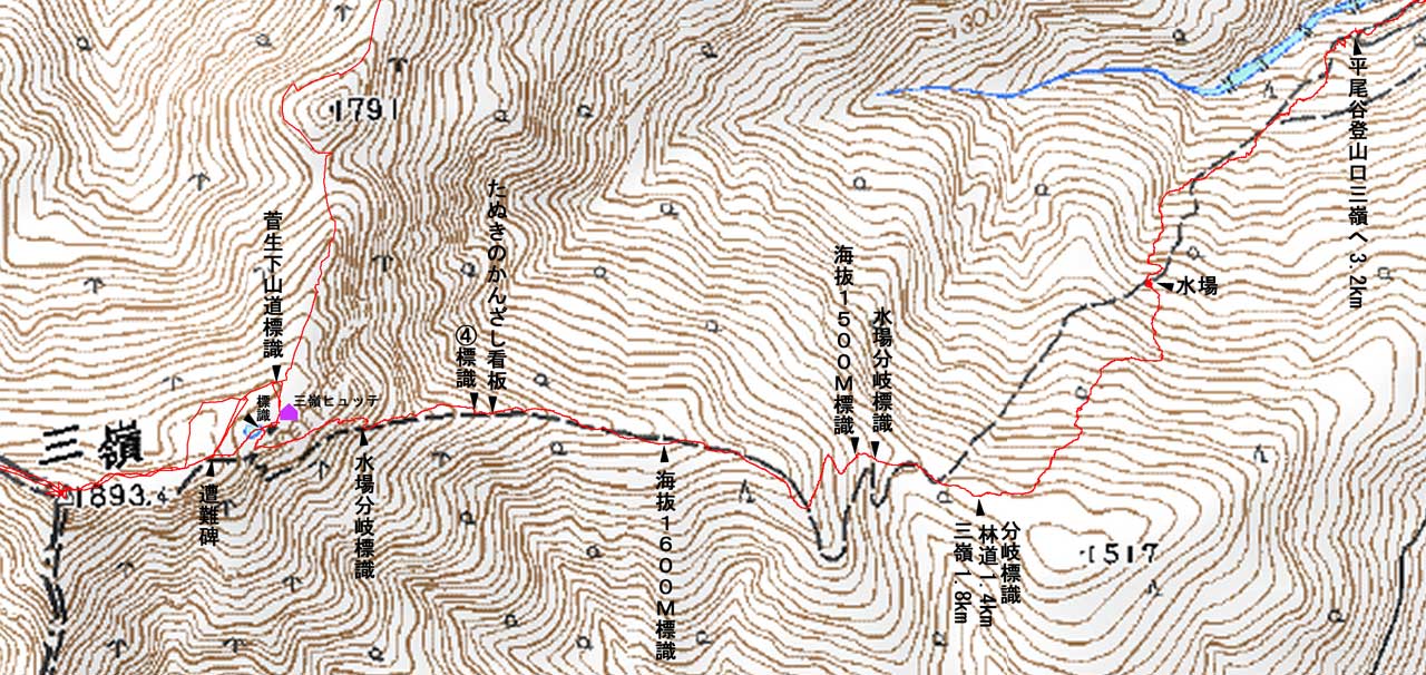 平成17年台風災害で 平尾谷登山道は新たに崩壊箇所が出て 迂回するところがあり、この GPSトッラクログは 台風被災 以前のものなので、更に 修正が必要になっている。